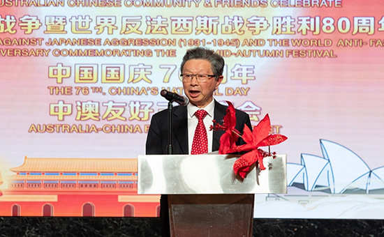 人民網悉尼9月30日電 為紀念中國人民抗日戰(zhàn)爭暨世界反法西斯戰(zhàn)爭勝利80周年、慶祝中華人民共和國成立76周年并喜迎中秋佳節(jié),澳大利亞華人團體協(xié)會于27日晚在悉尼舉行慶?;顒樱邪恼探绱?、澳大利亞華