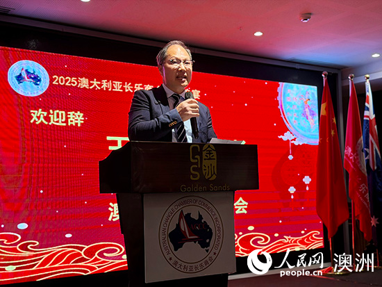 人民網悉尼10月9日電 10月5日,澳大利亞閩南同鄉(xiāng)會在悉尼舉辦2025博餅大賽暨中秋晚會,來自當?shù)卣探?、僑界的600余位嘉賓出席活動。 澳大利亞閩南同鄉(xiāng)會會長洪經緯發(fā)表致辭(圖片由主辦方提供)