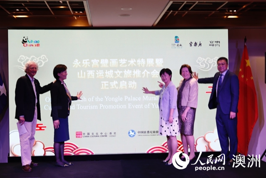 人民網(wǎng)悉尼11月19日電 永樂宮壁畫藝術(shù)特展暨山西運城文旅推介會18日晚在澳大利亞悉尼開幕,來自中澳文化、藝術(shù)、旅游領(lǐng)域的百余位嘉賓出席活動。 活動現(xiàn)場(攝影 沈詩洋) 活動由山西省運城市人民政府、