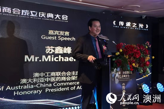人民網(wǎng)悉尼8月11日電 澳大利亞中醫(yī)藥商會成立慶典大會于8日晚在悉尼舉行。來自中澳政商界、學術(shù)界及中醫(yī)藥行業(yè)的嘉賓齊聚一堂,共同見證這一重要時刻。
