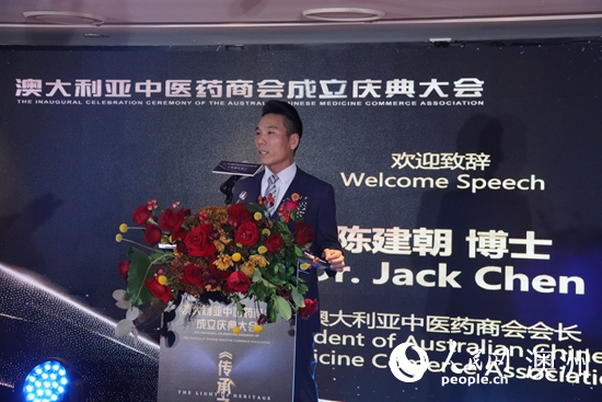 澳大利亞中醫(yī)藥商會會長陳建朝在大會上致辭 (攝影 韓濟澤)